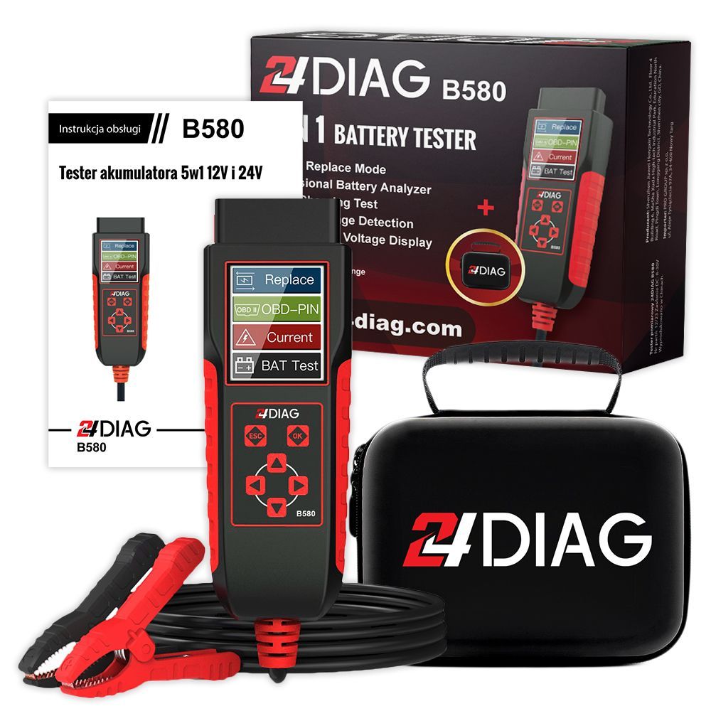24DIAG B580 TESTER AKUMULATORA 12V ANTY-RESET PODTRZYMANIE ECU NAPIĘCIA