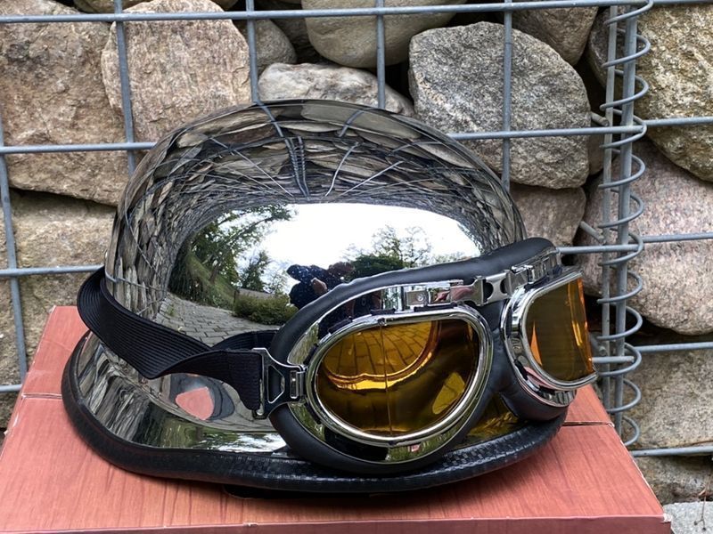 Kask chromowany german + google