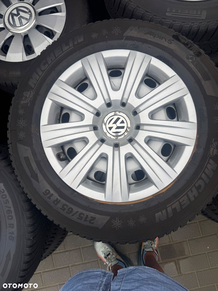 Komplet 4szt do VW TIGUAN. Felga stalowa 16. 5x112x57. 6,5Jx16H2. ET33+kołpaki oryginalne VW+opony MICHELIN ALPIN 5 zimowe 215/65/16. Bieżnik wszystkich opon 8mm. Stan WZOROWY. Żadnych napraw,uszkodzeń nie ma.