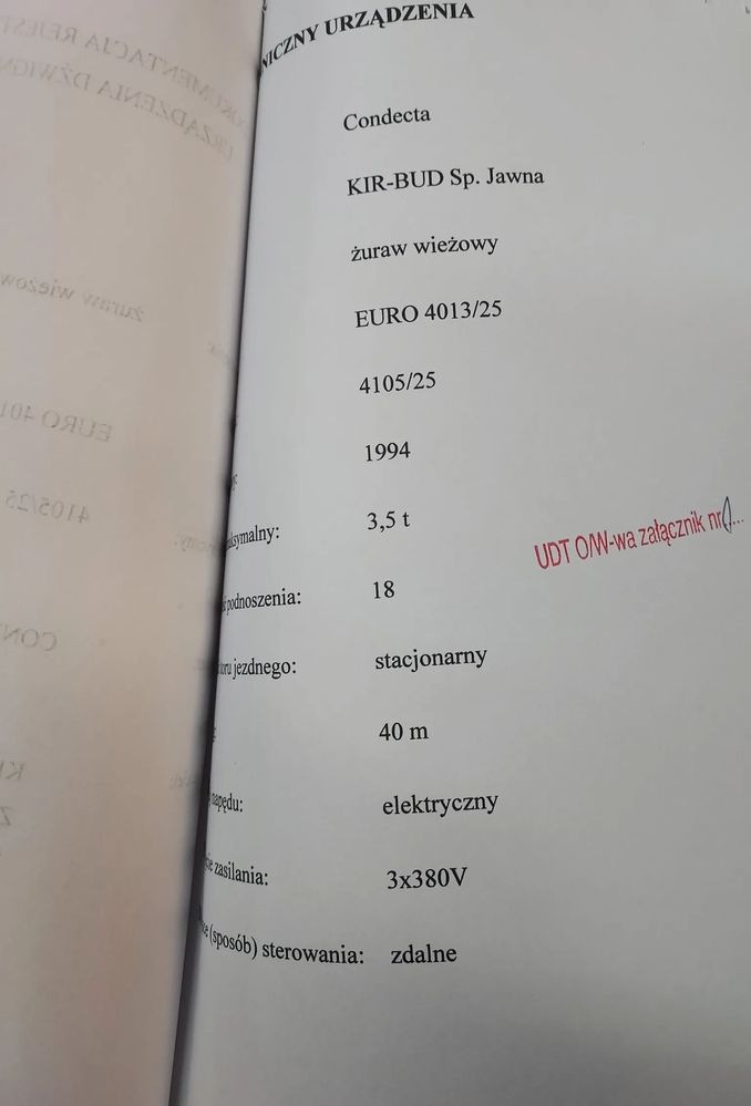 Żuraw wieżowy Condecta z zasil. elektrycznym 3x380V szybkomontujący