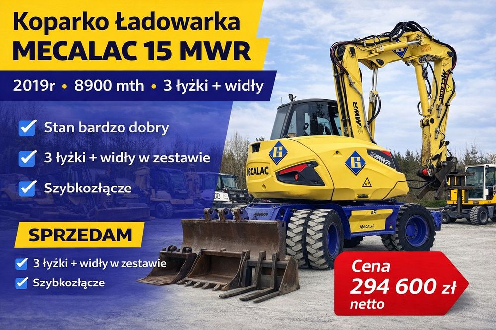 KOPARKA MECALAC 15MWR 3 łyżki widły 714 12MTX klima 4x4 centSmar 35kmH
