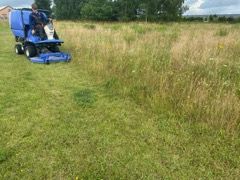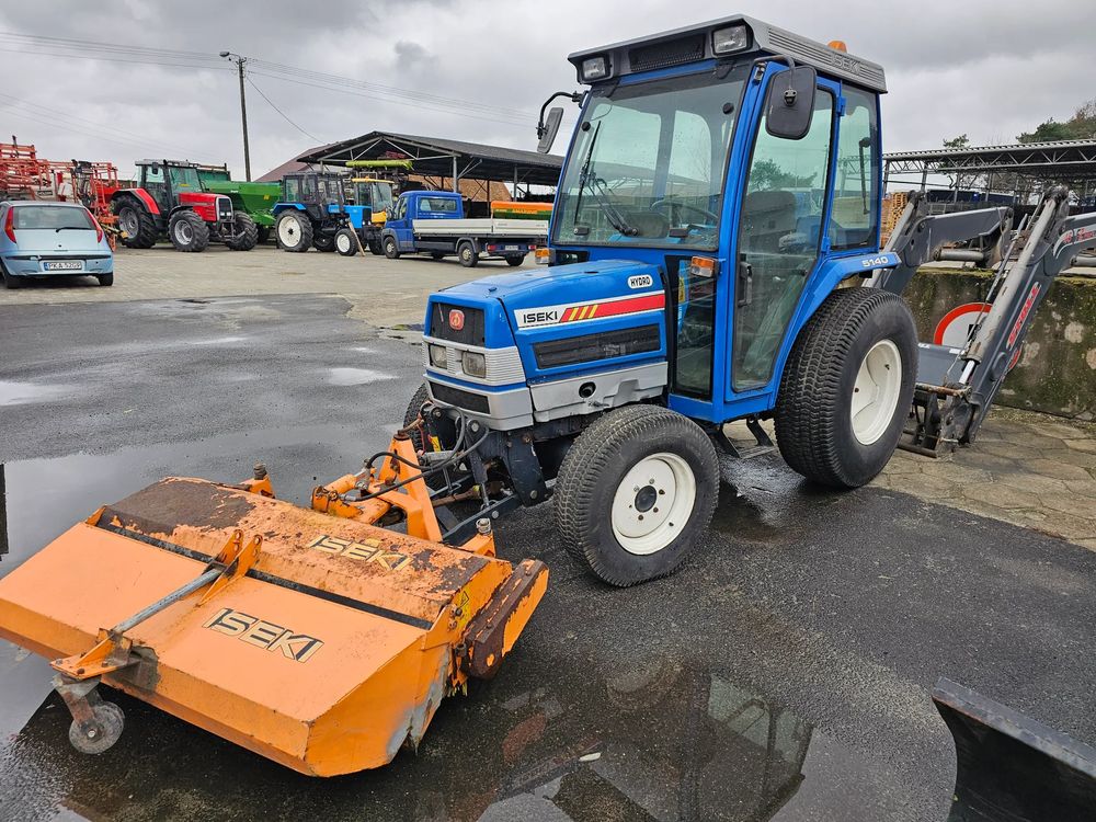 ISEKI TG 5390 osprzętem w postaci kosiska oraz szczotki do czyszczenia
