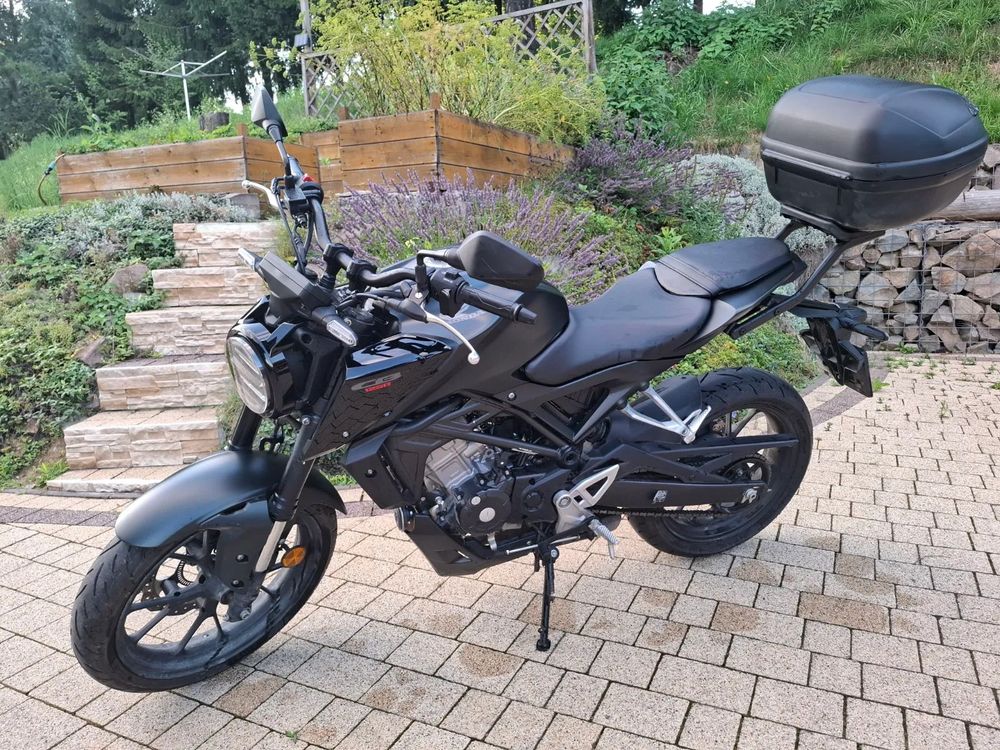 125 cm3 • 15 KM • Sprzedam Honde cb125r rocznik 2023, pierwszy właściciel, kufer