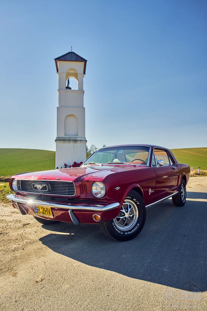 5000 cm3 • 220 KM • Ford Mustang 1966r po renowacji bordowy z białym wnętrzem