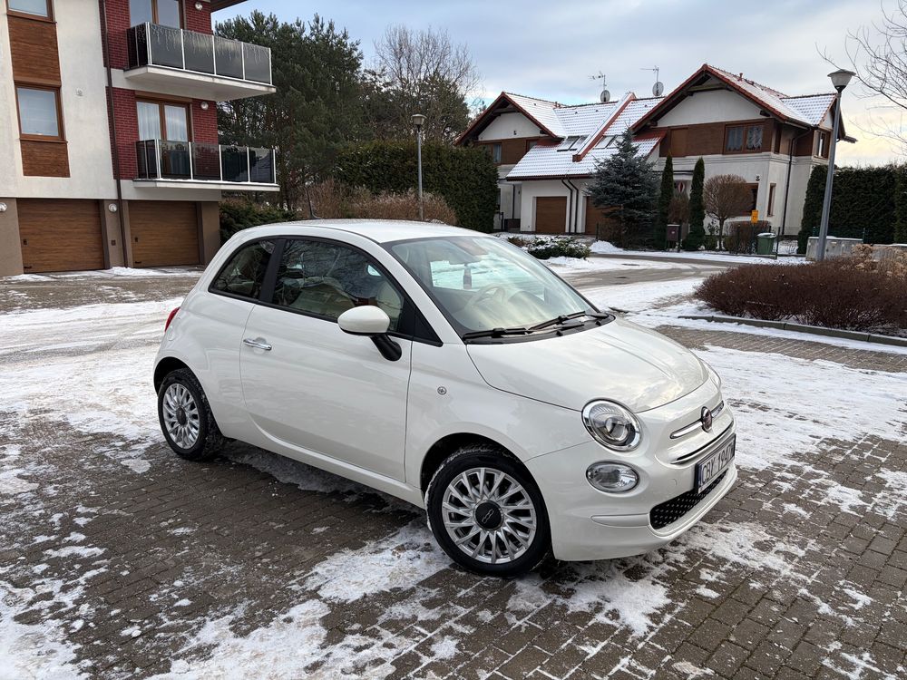 999 cm3 • 70 KM • FIAT 500 (2021) hybryda z pięknym beżowym wnętrzem