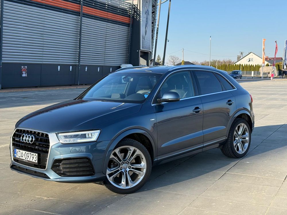 1984 cm3 • 211 KM • Audi Q3 S-line w niebieskim kolorze.
