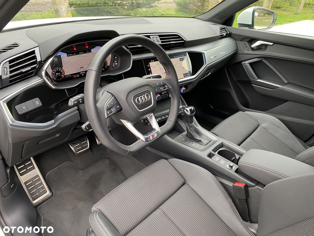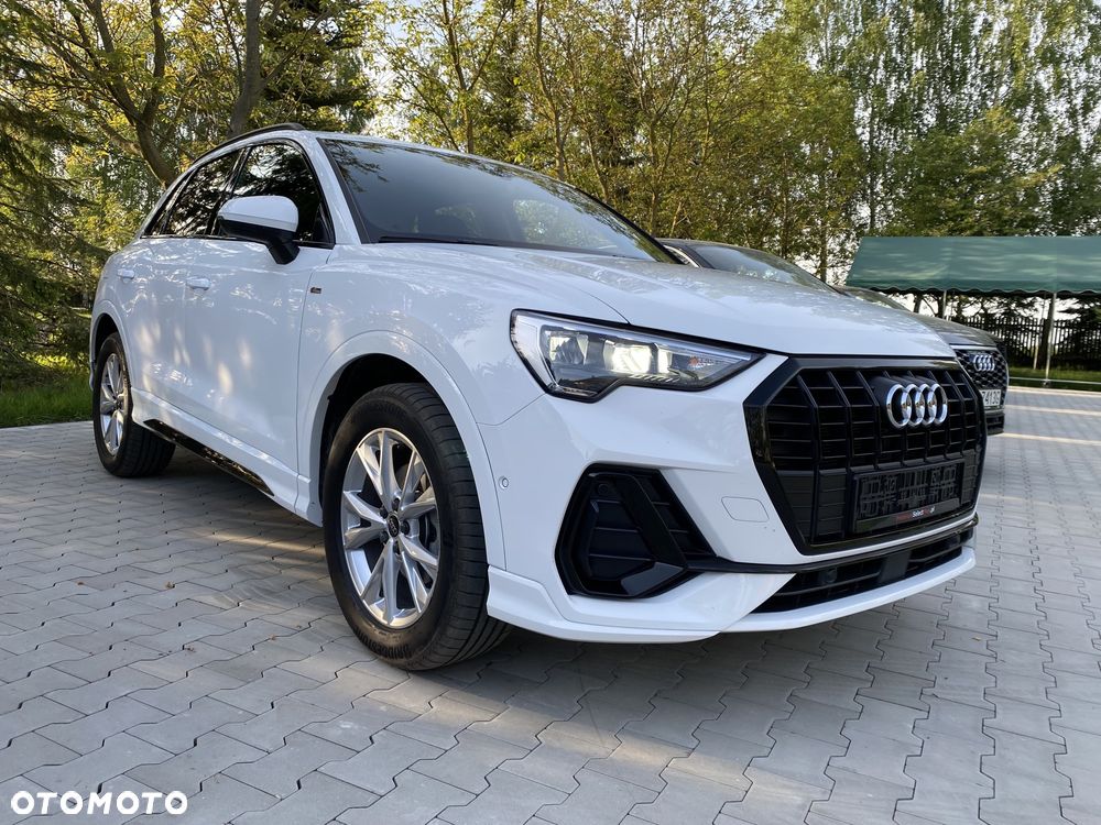 Oferujemy do sprzedaży w idealnym stanie technicznym i lakierniczym, z Polskiego Salonu, Audi Q3 S-Line mHEV 35 TFSi Stronic o mocy 150KM. Auto w kolorze Biały Ibis z zewnętrznym Pakietem optycznym Czerń, wyposażone m.in. w Wewnętrzny Pakiet S Line, 5 lat gwarancji Audi do 150.000 km, Felgi Aluminiowe 18 cali, 5 ramion w układzie V, Nawigację Fabryczną, AppleCarPlay/AndroidAuto, Elektrycznie sterowaną pokrywą bagażnika, Kamerę cofania i wiele innych dodatków. Olej wymieniany co rok i obecnie został wymieniony przy dużym przeglądzie 26.06.2025r przy 18.185 km. Wystawiamy Fakturę Vat23%. Kupujący zwolniony z opłaty podatku PCC 2% czyli 3.100 zł. Leasing dostępny w PLN oraz w EUR.