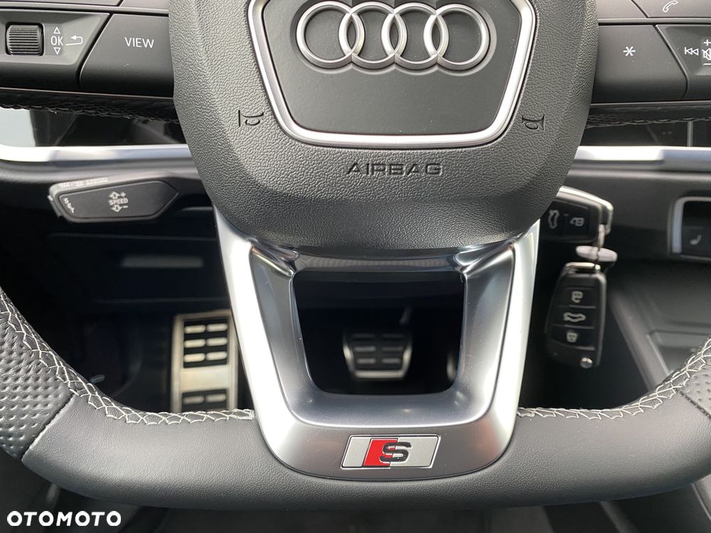 2PF Kierownica sportowa, 3-ramienna wielofunkcyjna plus spłaszczona u dołu, obszyta skórą, prawy i lewy segment kierownicy obszyte perforowaną skórą, emblemat S line i chromowana aplikacja