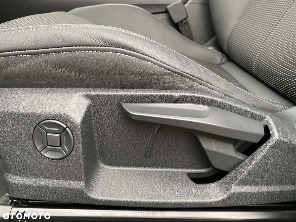 -Sportowe siedzenia z tapicerką z tkaniny Puls/skóry ekologicznej mono.pur 550 i z logo S line na oparciach przednich siedzeń: środkowa część przednich siedzeń i skrajnych siedzeń z tyłu obszyta tkaniną Puls w kolorze czarno-srebrnym; wewnętrzne części boków siedzeń obszyte czarną skórą, zewnętrzne części boków siedzeń, środkowe miejsce siedzące z tyłu i przedni środkowy podłokietnik obszyte skórą ekologiczną mono.pur 550 w kolorze czarnym, kontrastowy szew w kolorze szarym Fels