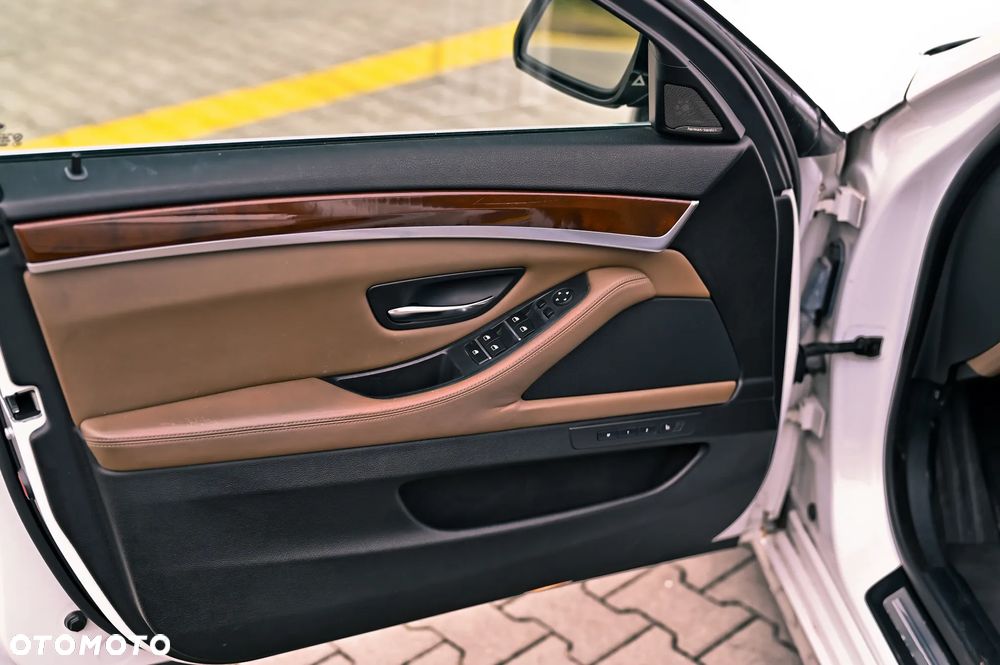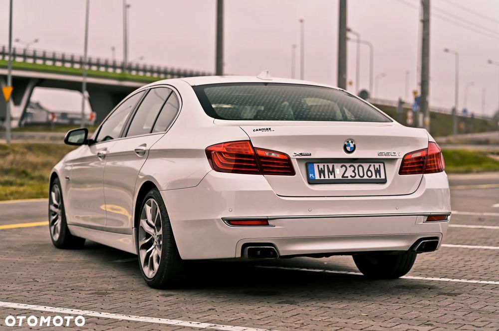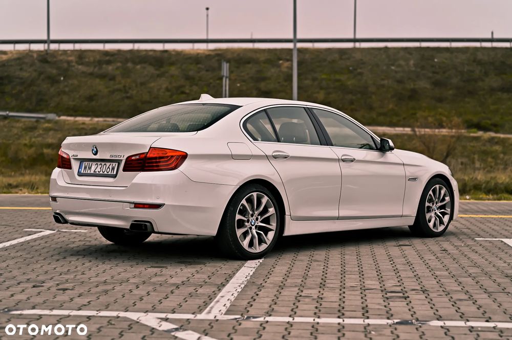 Dzień dobry. Posiadam na sprzedaż piękne i rzadko spotykane BMW 550i xDrive, które zostało wyprodukowane w 2014 roku. Pod maską BMW pracuje podwójnie doładowany silnik V8 o mocy 450 KM. Auto na początku roku przypłynęło ze Stanów Zjednoczonych z niewielkimi uszkodzeniami tj. lewy reflektor, maska i zderzak. Wszystko to oczywiście zostało naprawione zgodnie ze sztuką. Silnik, zawieszenie i poduszki powietrzne były nienaruszone. BMW z salonu wyjechało w wersji Individual co przekłada się na naprawdę bogate wyposażenie a dzięki temu, że auto posiada niewielki przebieg 104.000 km to jest bardzo dobrze utrzymane zarówno z zewnątrz jak i wewnątrz. Z najważniejszego wyposażenia samochodu warto wymienić:
