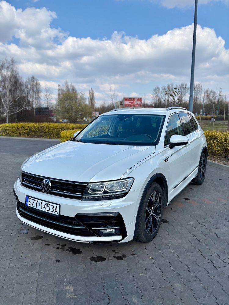 1984 cm3 • 220 KM • VW Tiguan 2018 R-LINE, 4x4, biała perła, mały przebieg, TSI + LPG