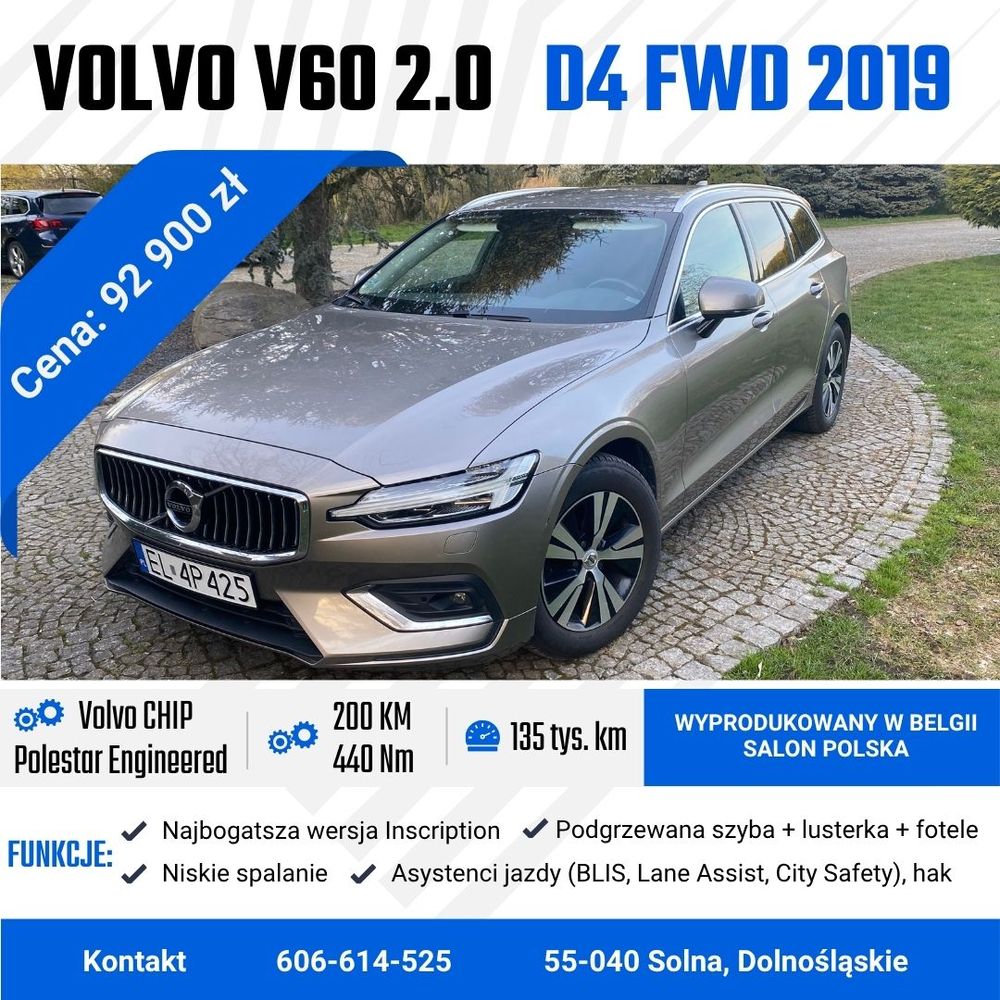 1969 cm3 • 190 KM • Volvo V60 D4 Momentum Pro