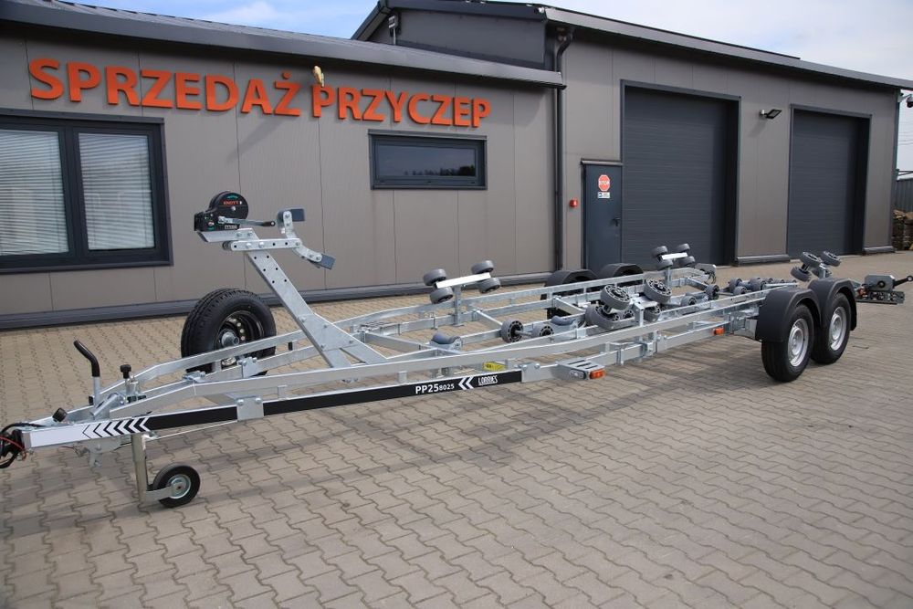 Przyczepa pod łódź ocynk 8,6m,3,5T ROLKI, oraz czarna hamowana wybór