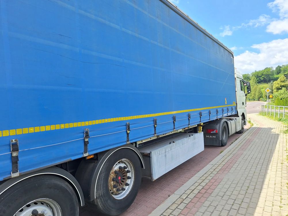 Firanka, naczepa gotowa do jazdy.